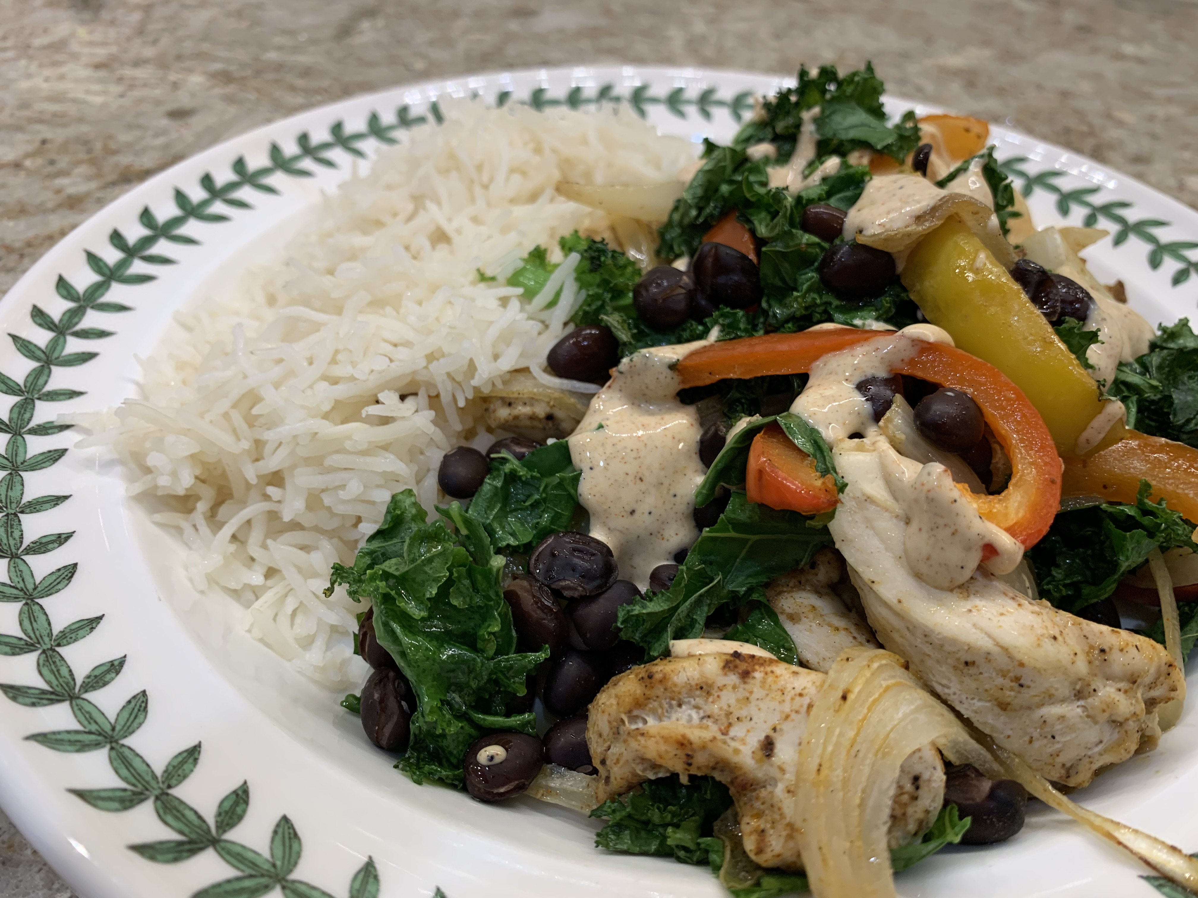 Sheet pan dinners are a great way to make a healthy dinner quickly. This one is filled with flavour and many healthful ingredients like kale and black beans. I love the fact that clean up is relatively quick and easy. It can be enjoyed on its own or with a side of rice or quinoa.