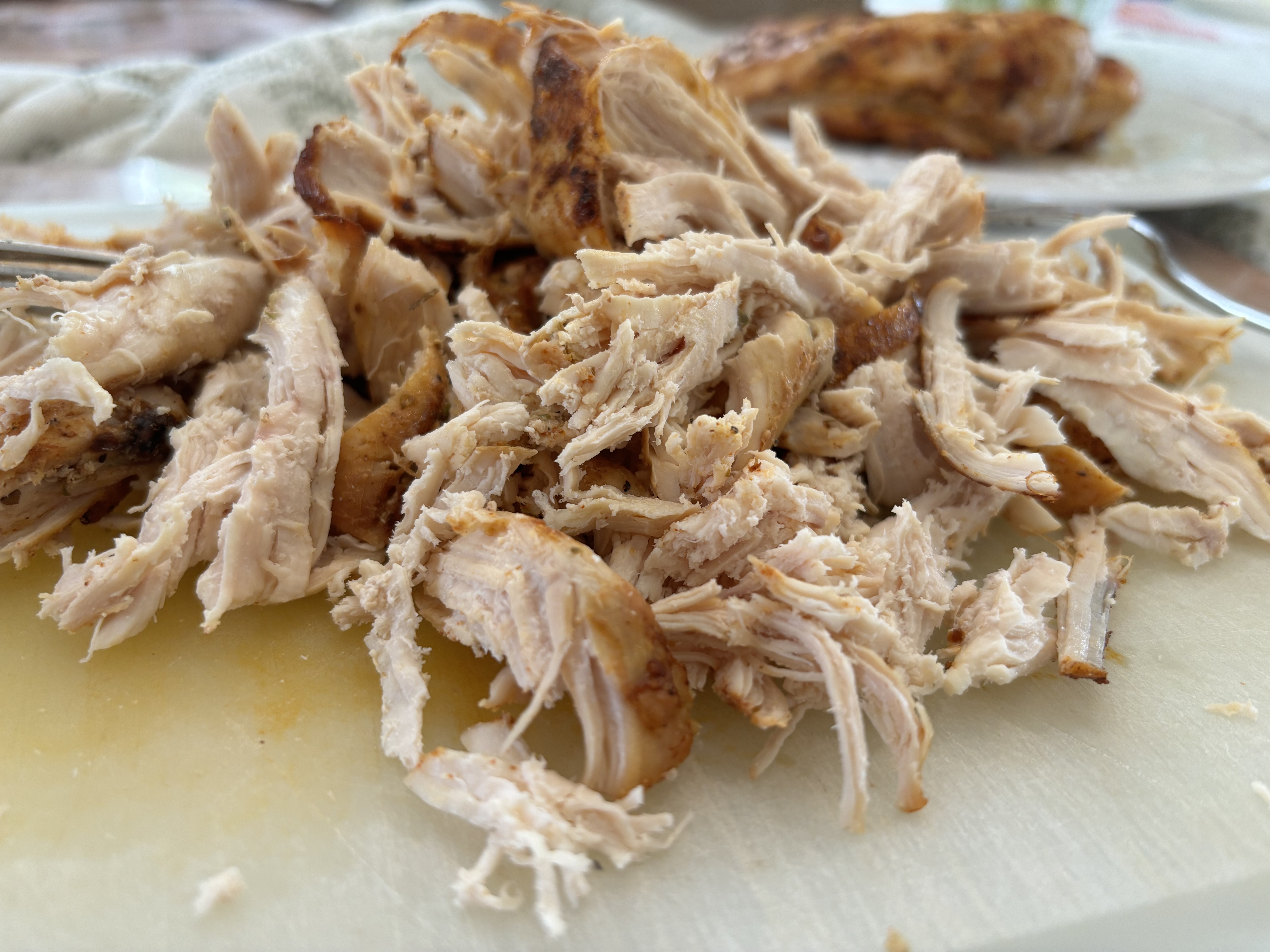 When a recipe calls for shredded roasted chicken, I pull out my air fryer and make this recipe. It’s quick and easy and works well in enchiladas, burritos, stuffed peppers, sandwich wraps, salads and so on.