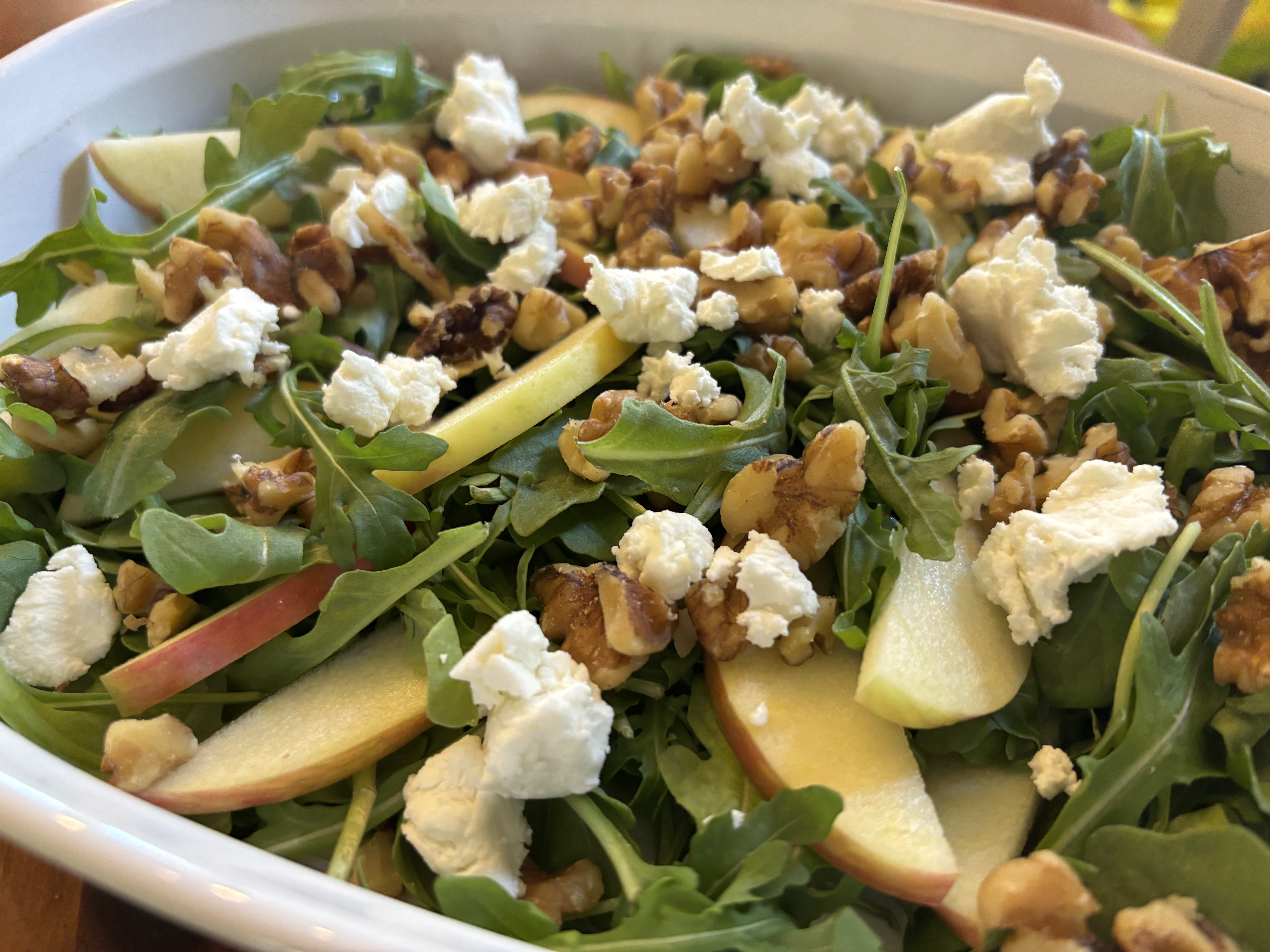 Living beside an apple orchard has its perks. Fresh and delicious honey crisp apples available every fall to use in all kinds of yummy recipes. This gluten free apple walnut arugula salad is one of my favourite fall recipes. It pairs wonderfully with a bowl of butternut squash soup. Perfect for a yummy fall day!